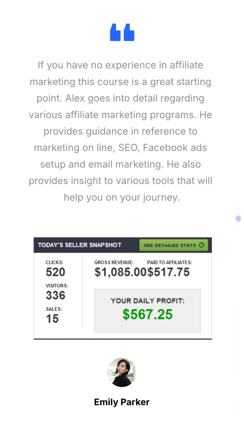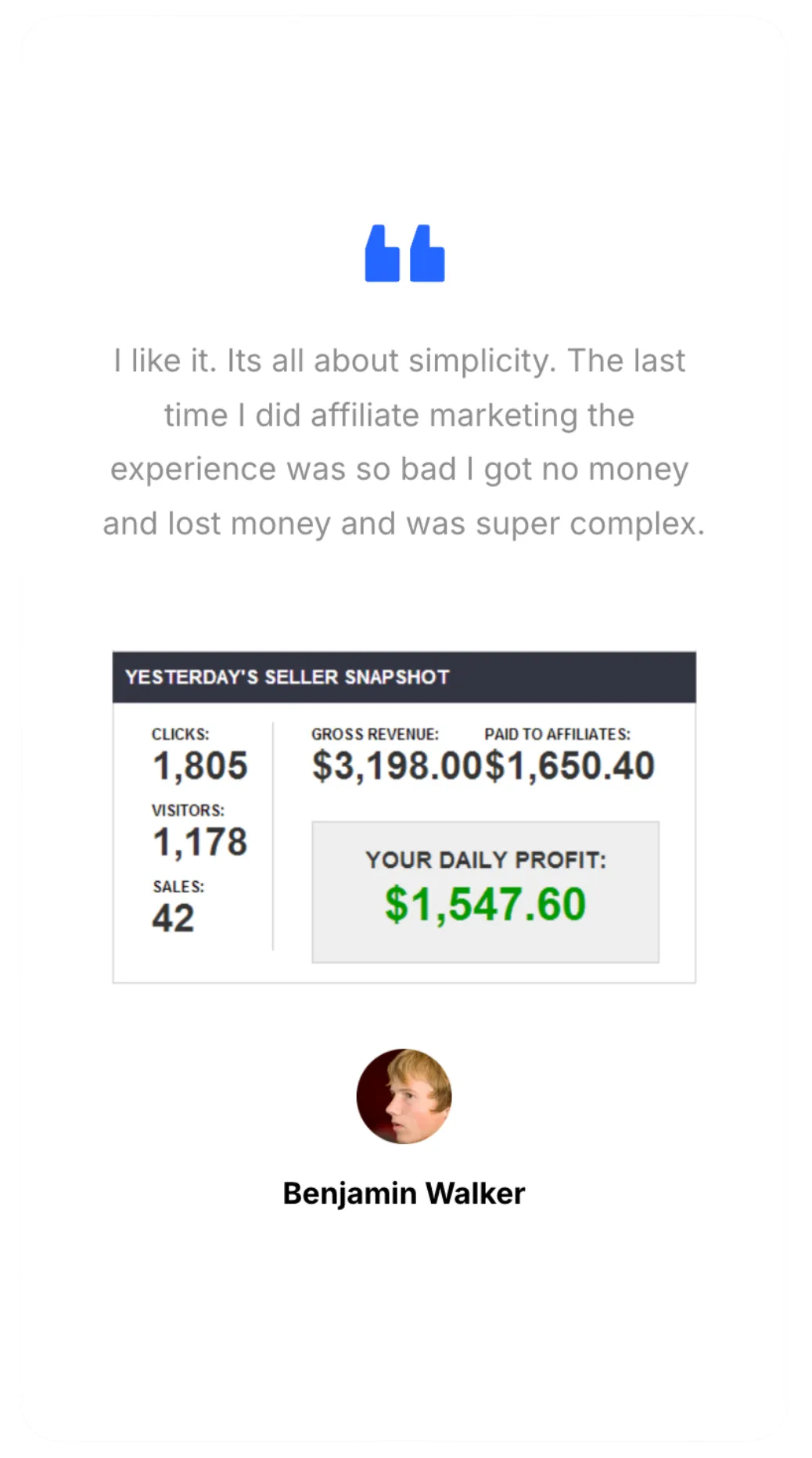 Inside 1-Click Affiliate, you’ll get direct access to a proven affiliate marketer who’s built multiple passive-income funnels from scratch. Receive personalized campaign feedback, funnel audits, and tactical coaching that actually drives commissions.