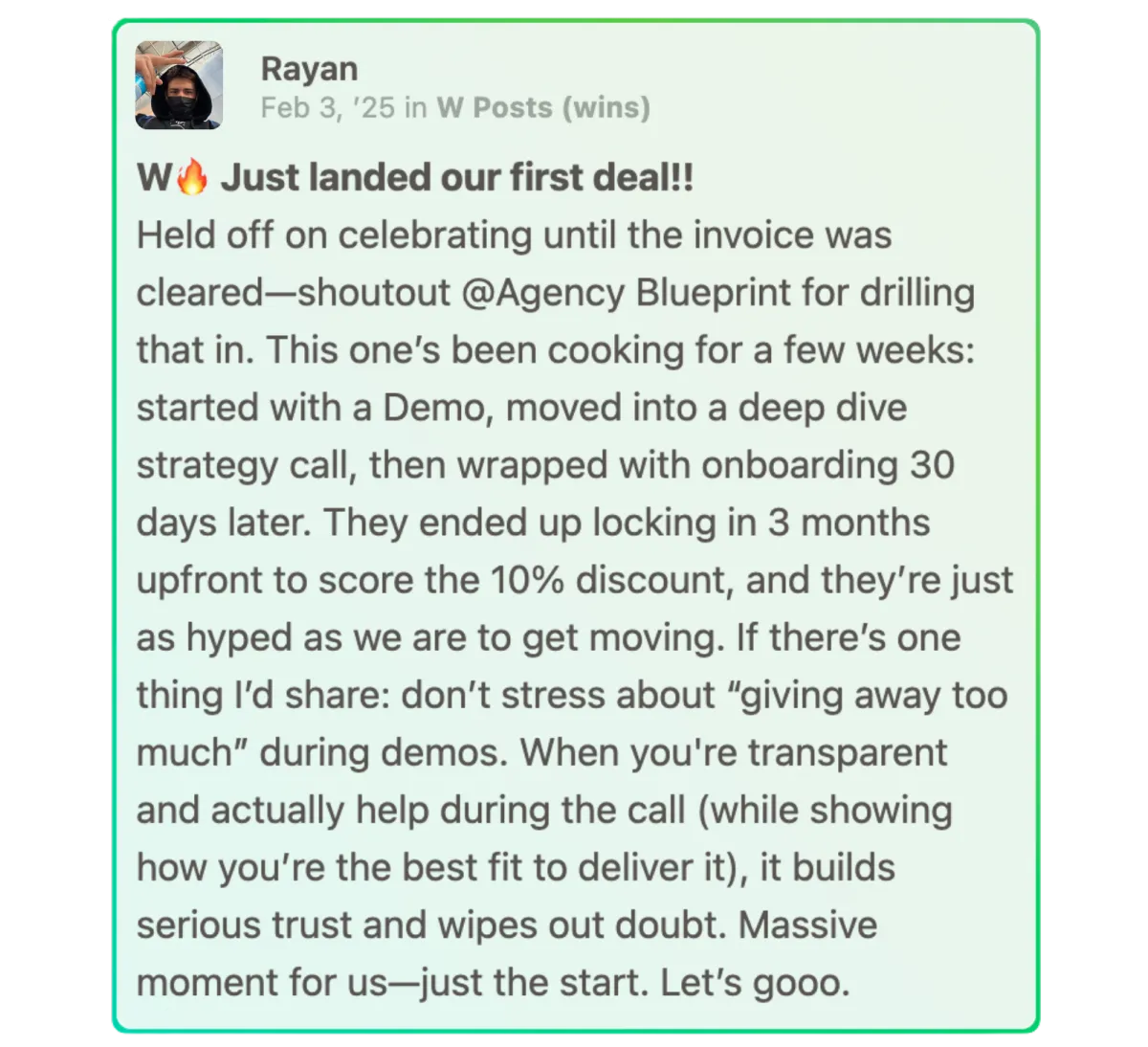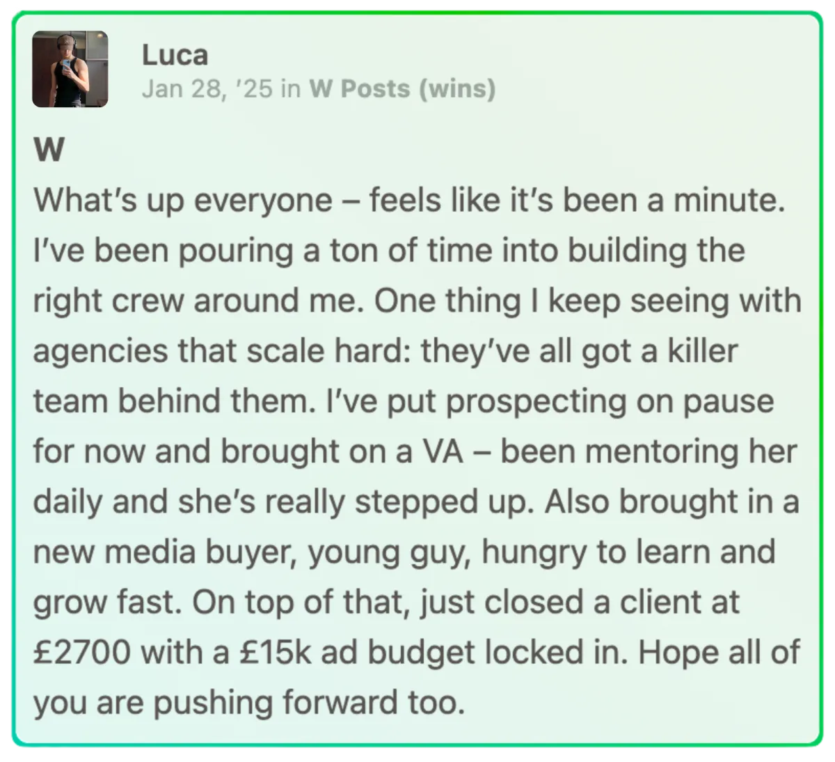 You’ll get 1:1 access to a 7-figure agency mentor, live Q&A sessions, feedback on your offers and outreach, and our private Slack community for daily accountability and support.